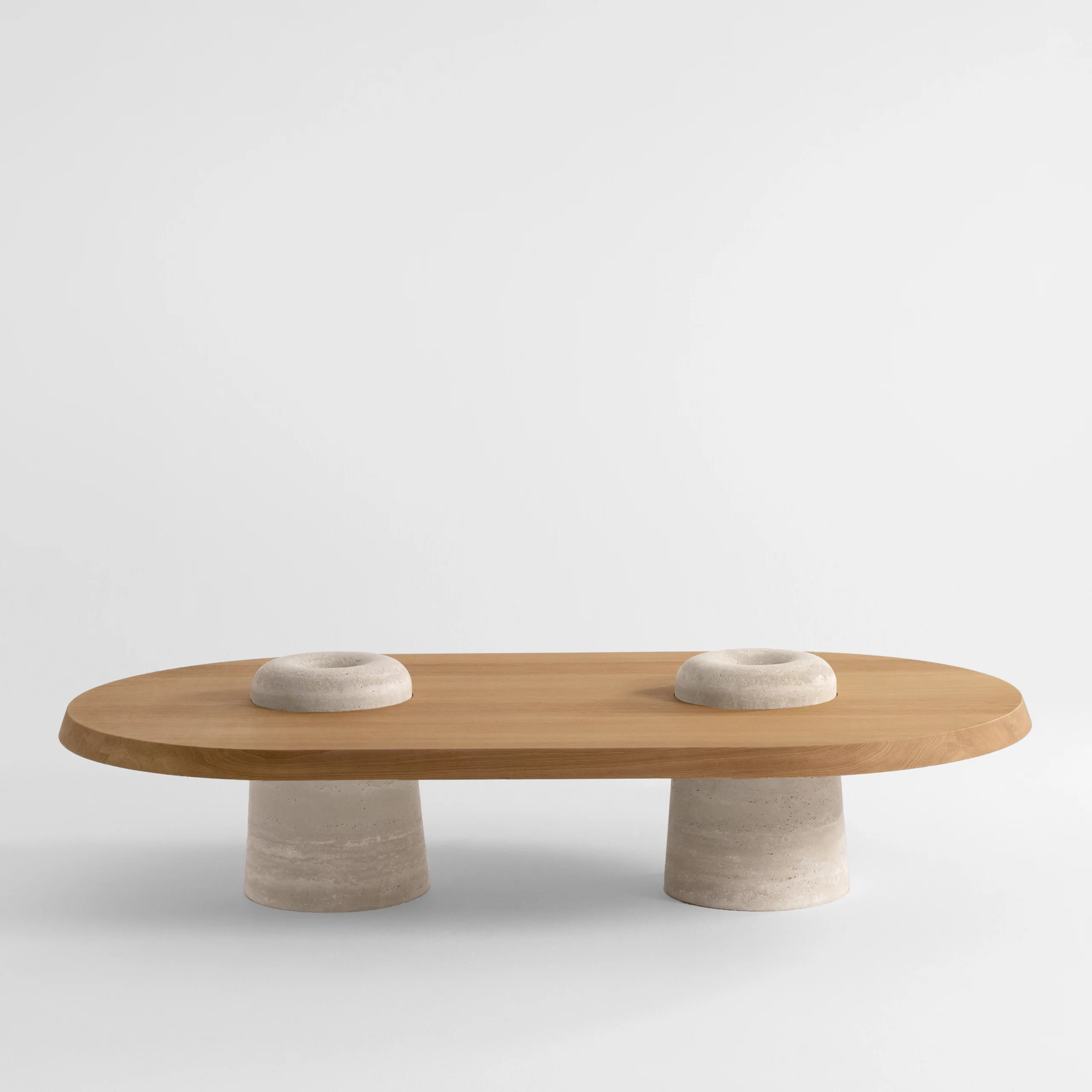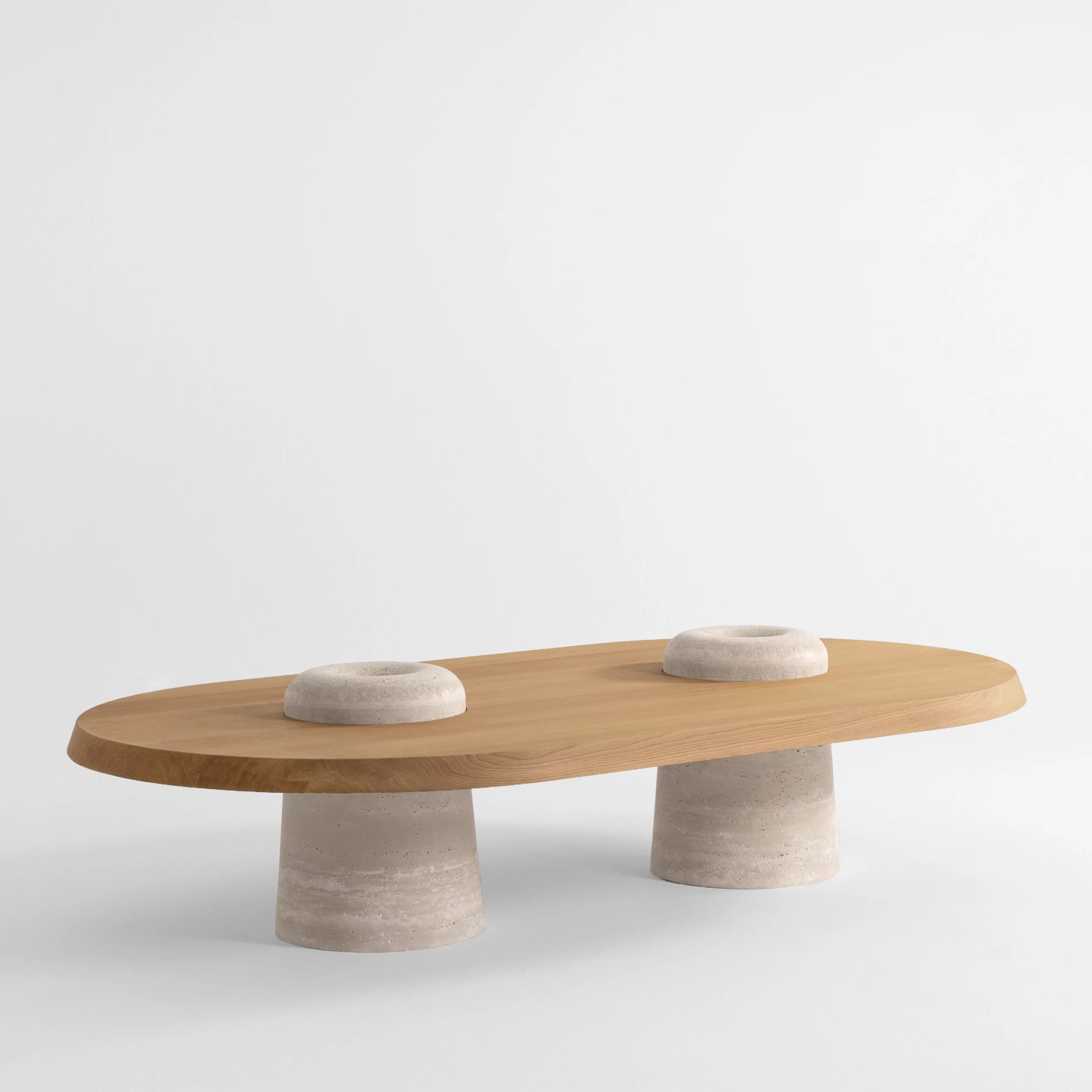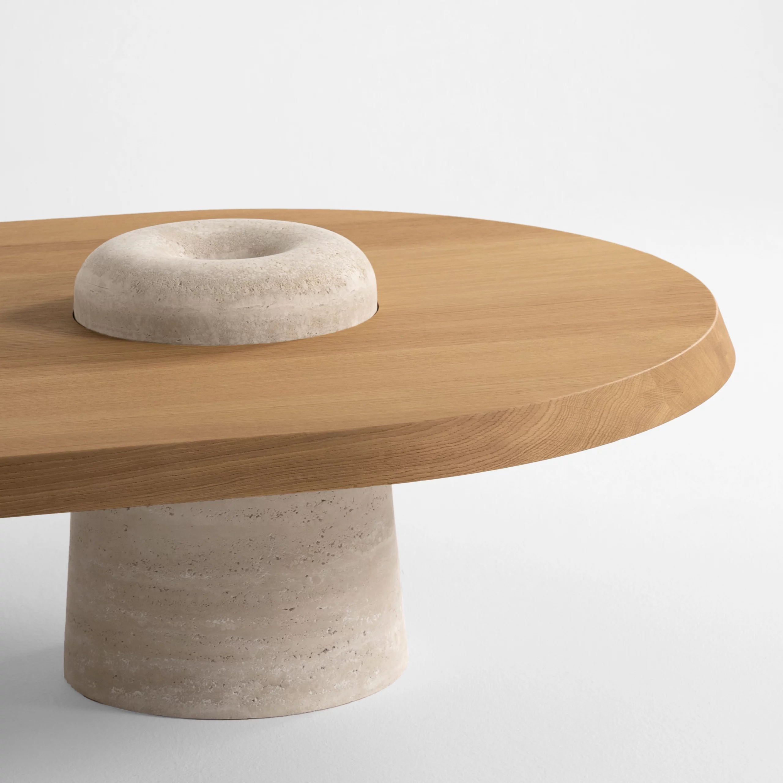 Brushed solid oak and travertine