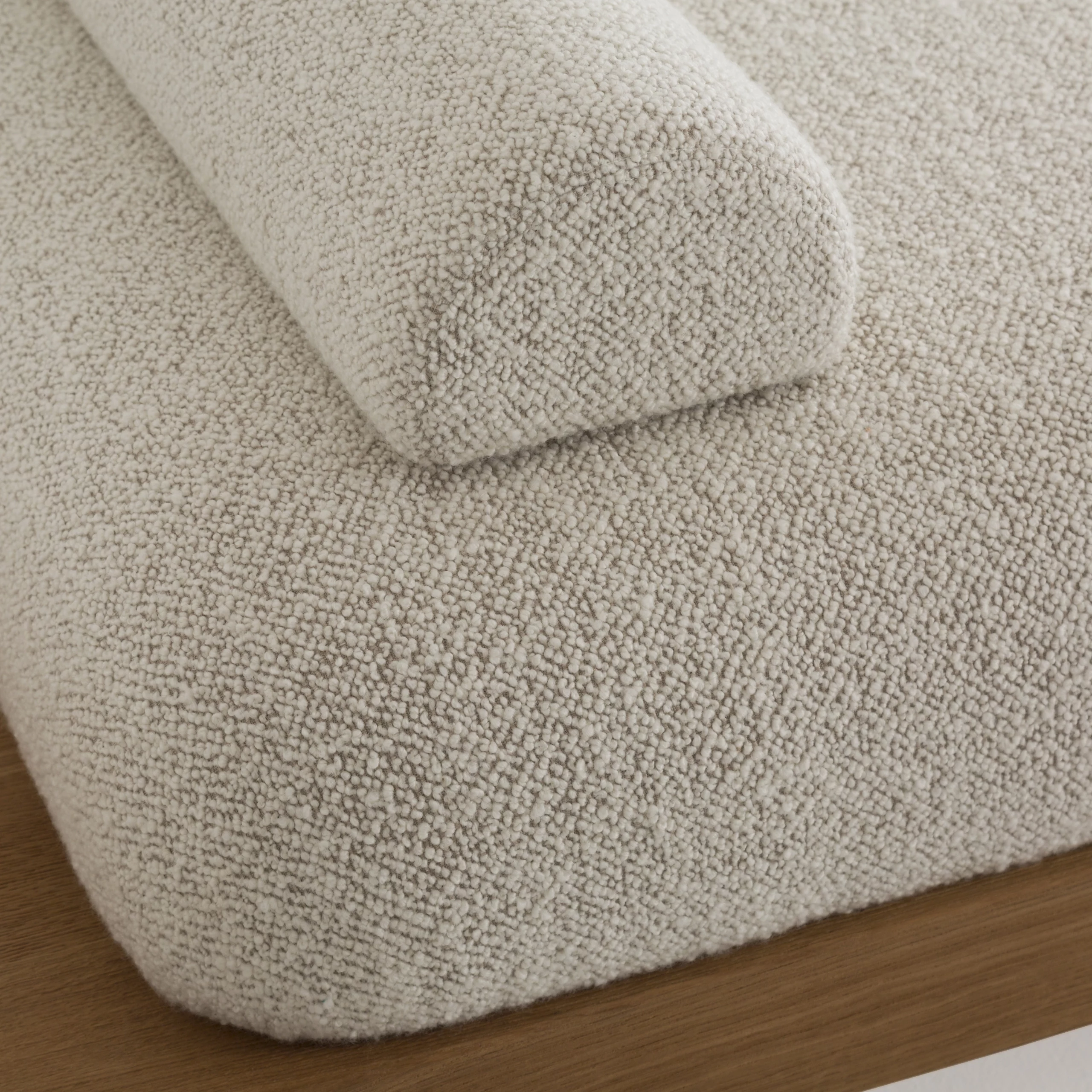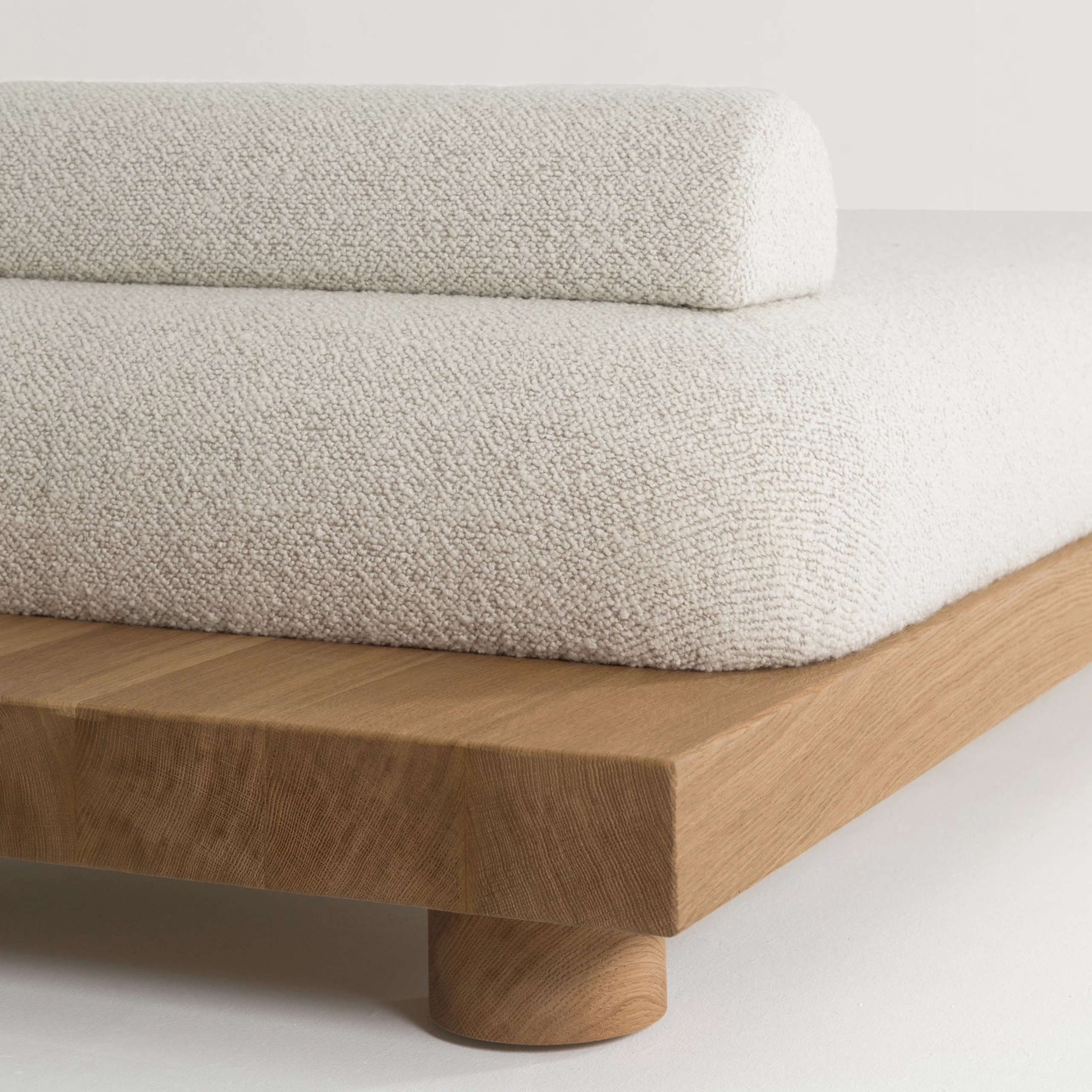 The solid wood plank, seemingly floating, imparts a distinctive aesthetic and functional intent to the NOMAD sofa. While accommodating the seating, the overhangs on either side allow for placing and displaying items, giving a personal touch to the furniture.