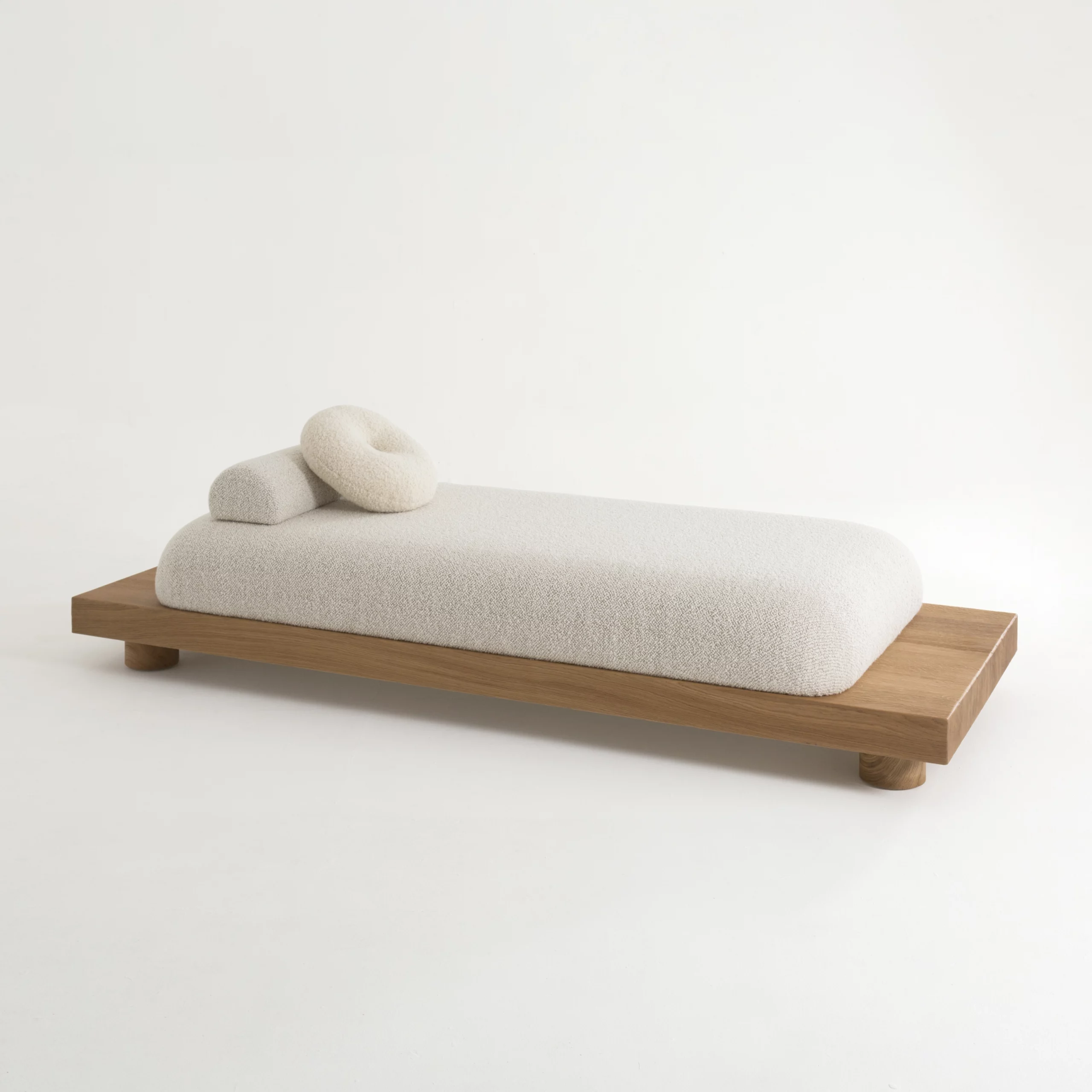 The NOMAD collection engages in a dialogue between wabi-sabi inspiration and French sophistication. The raw appearance of brushed wood contrasts with the upholstered curves of the seating; the minimal line merges with rounded forms, creating a harmonious and refined balance.