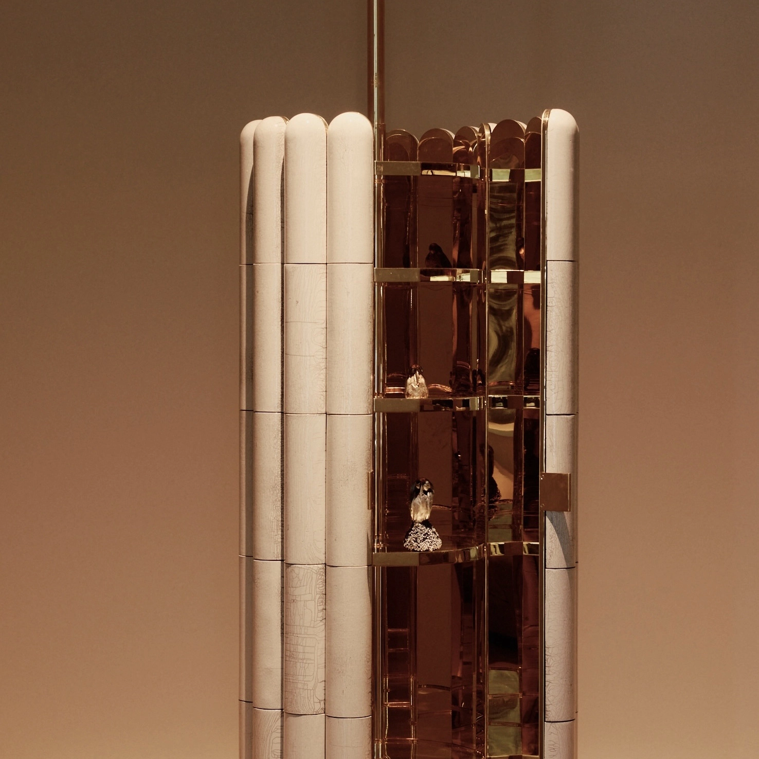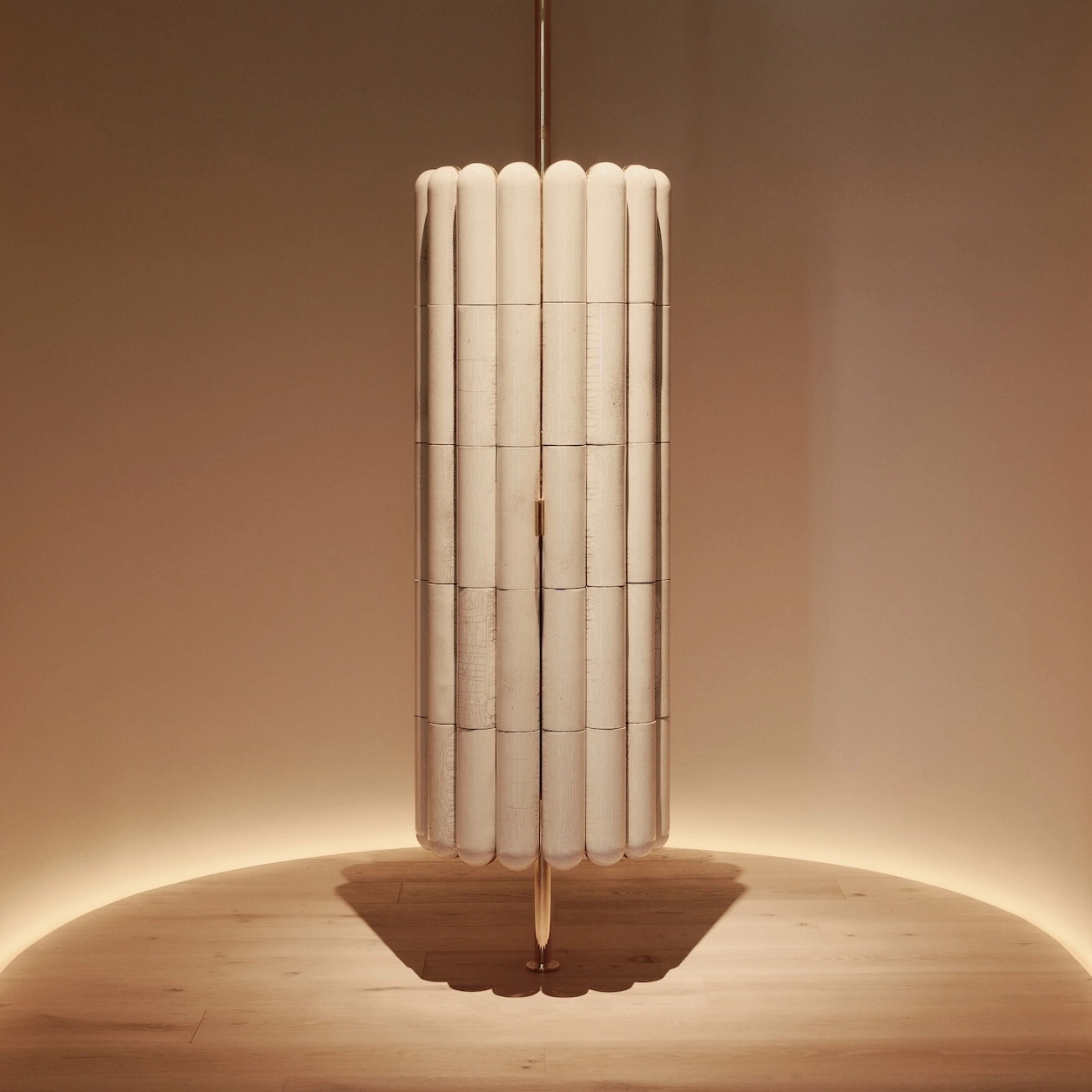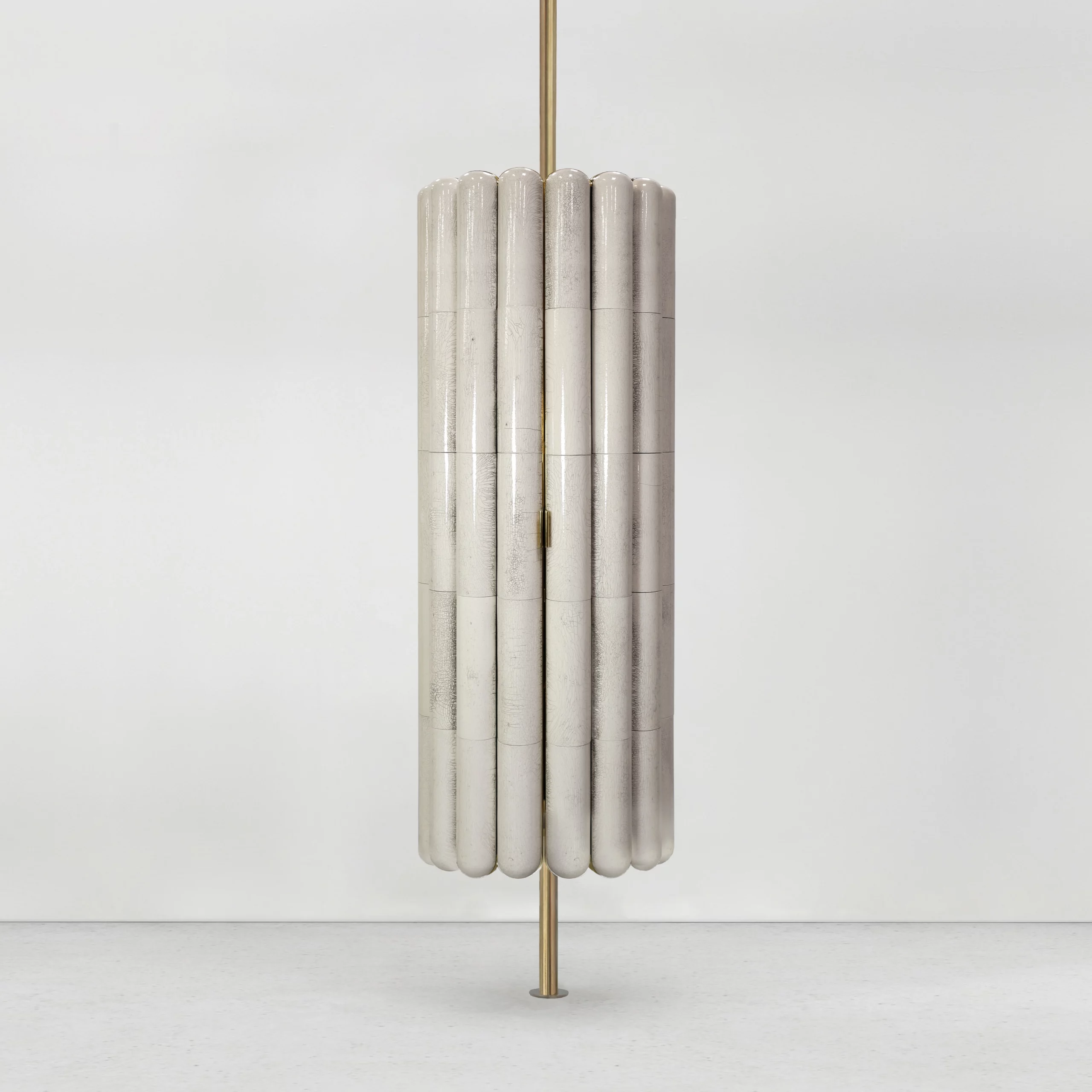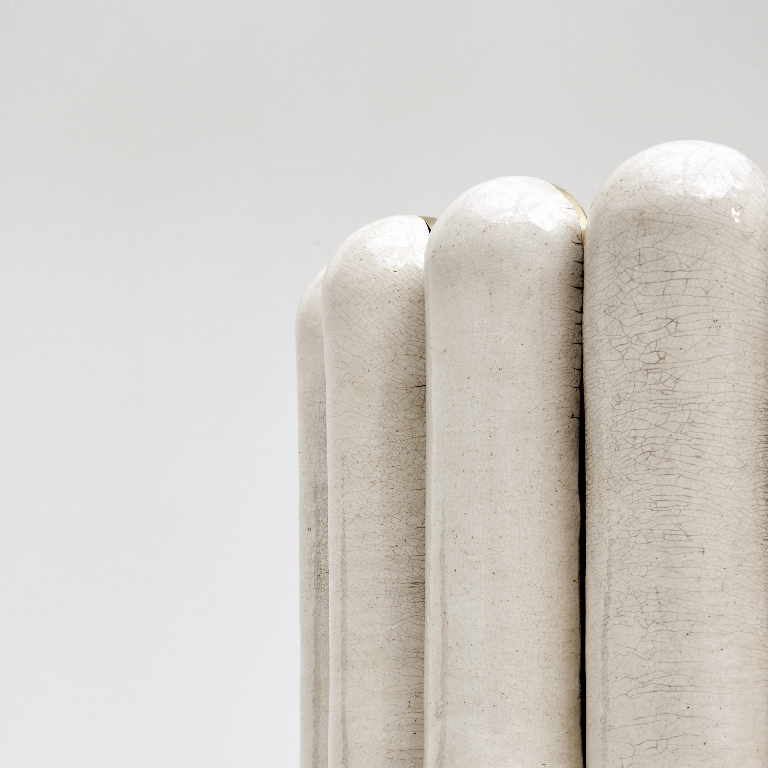 The RAKU-YAKI collection consists of bold and ambitious pieces. The tiles adorning the furniture and lighting fixtures are crafted using Raku, an ancient Japanese ceramic technique. The thermal shock creates cracks in the glaze and reveals subtle black lines, forming random patterns like a landscape seen from above. This technique makes each piece unique, showcasing the power and magic of handcrafted materials in lighting, tables, sideboards, and bar or wall cabinets. These pieces exude a subtle refinement, both in their design and in the aura of the material.
