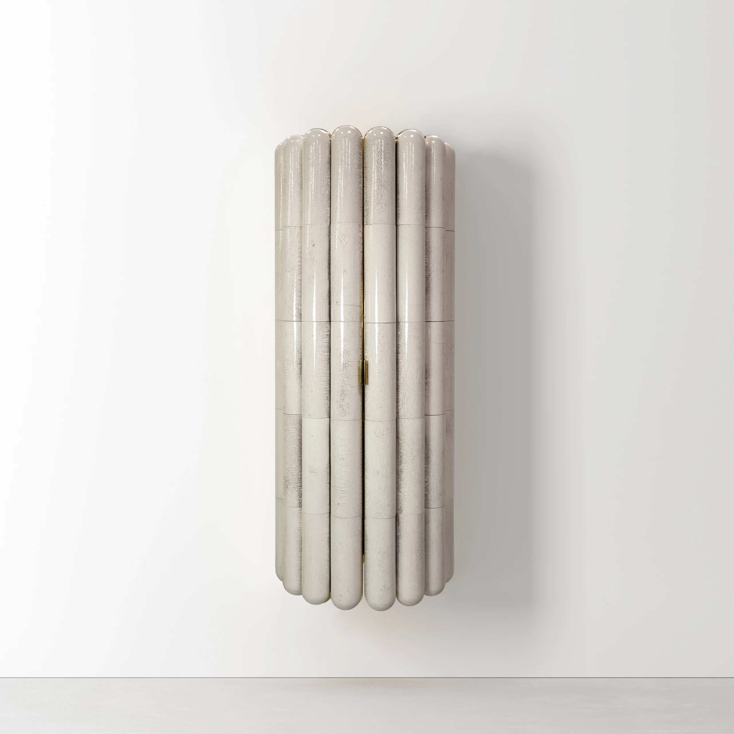 The RAKU-YAKI collection consists of bold and ambitious pieces. The tiles adorning the furniture and lighting fixtures are crafted using Raku, an ancient Japanese ceramic technique. The thermal shock creates cracks in the glaze and reveals subtle black lines, forming random patterns like a landscape seen from above. This technique makes each piece unique, showcasing the power and magic of handcrafted materials in lighting, tables, sideboards, and bar or wall cabinets. These pieces exude a subtle refinement, both in their design and in the aura of the material.