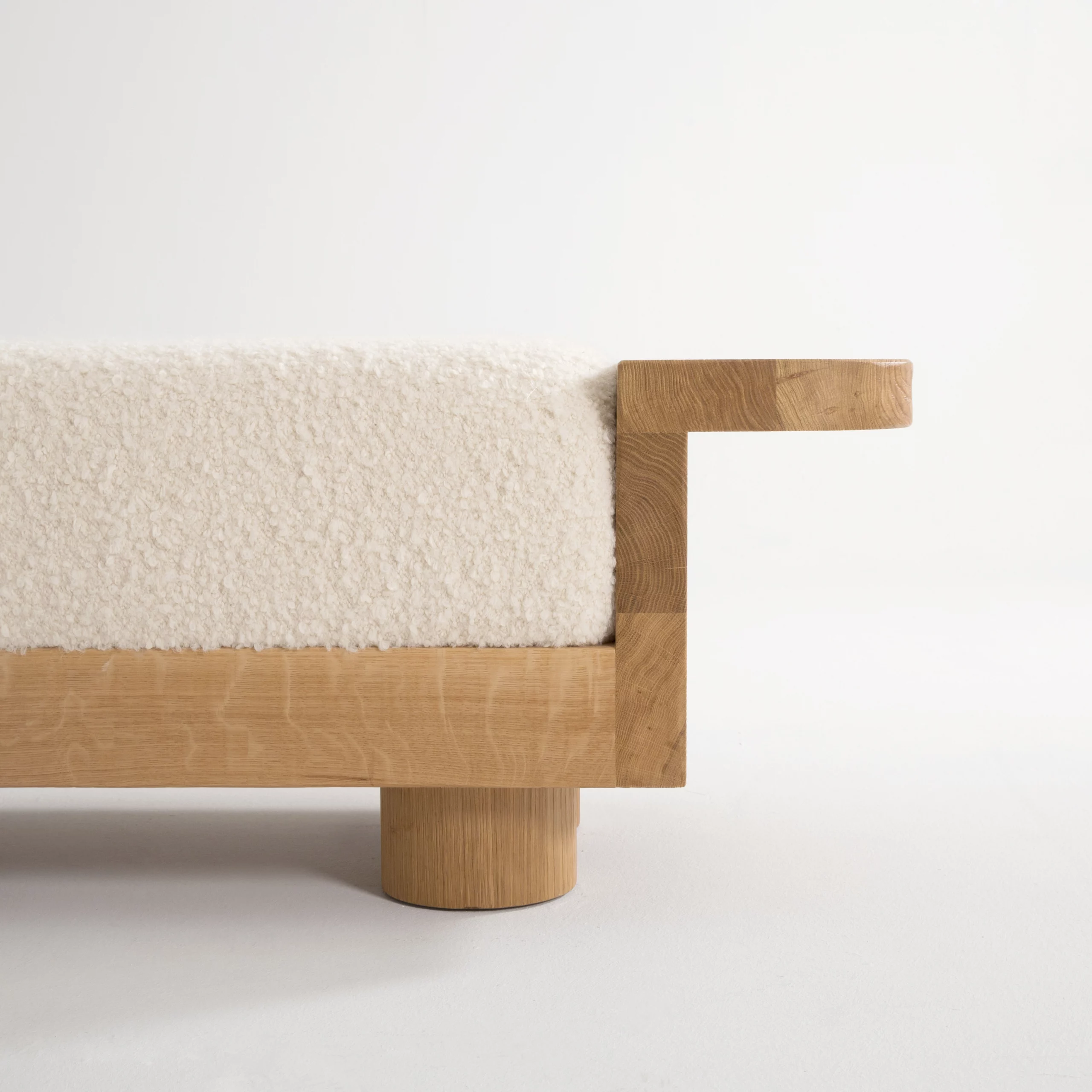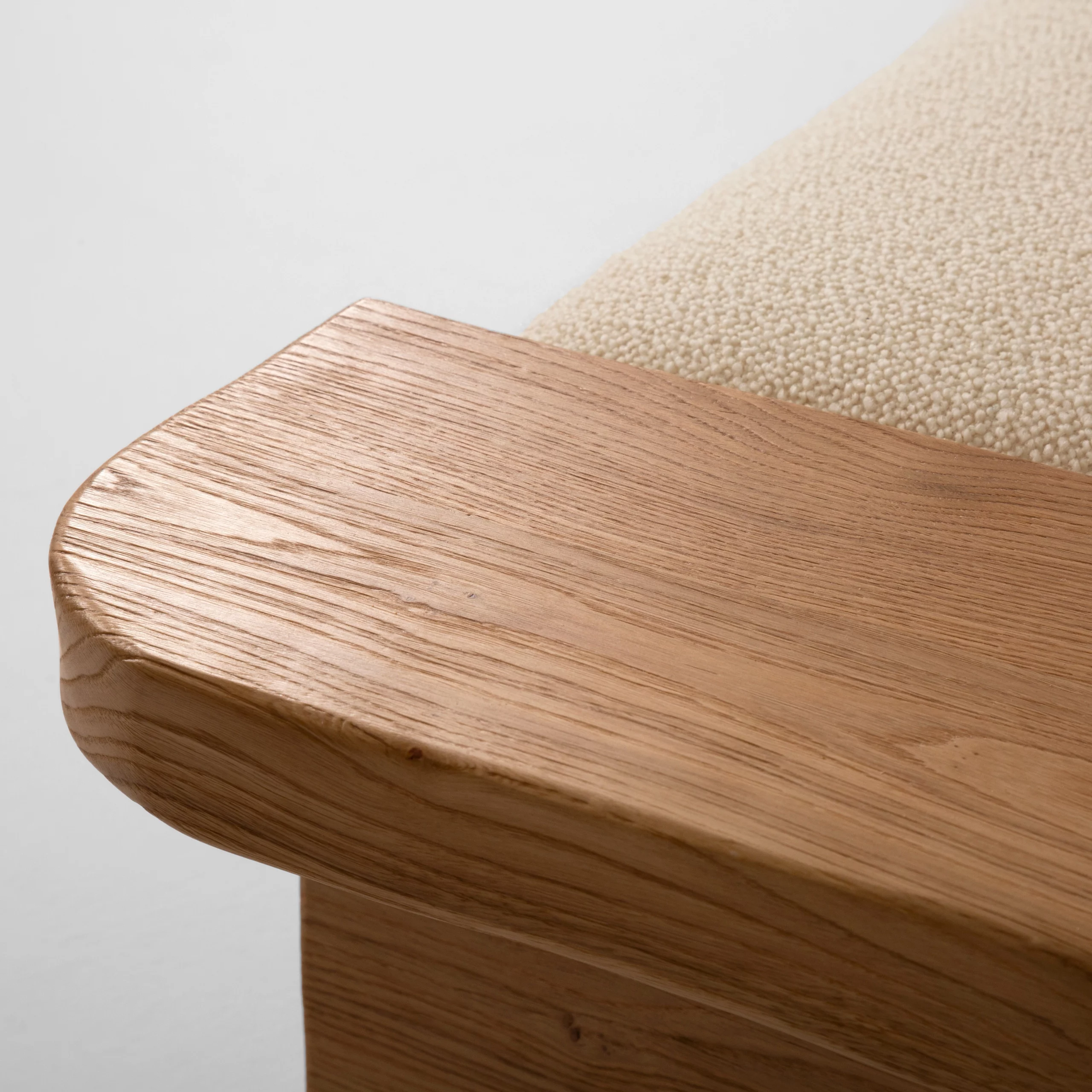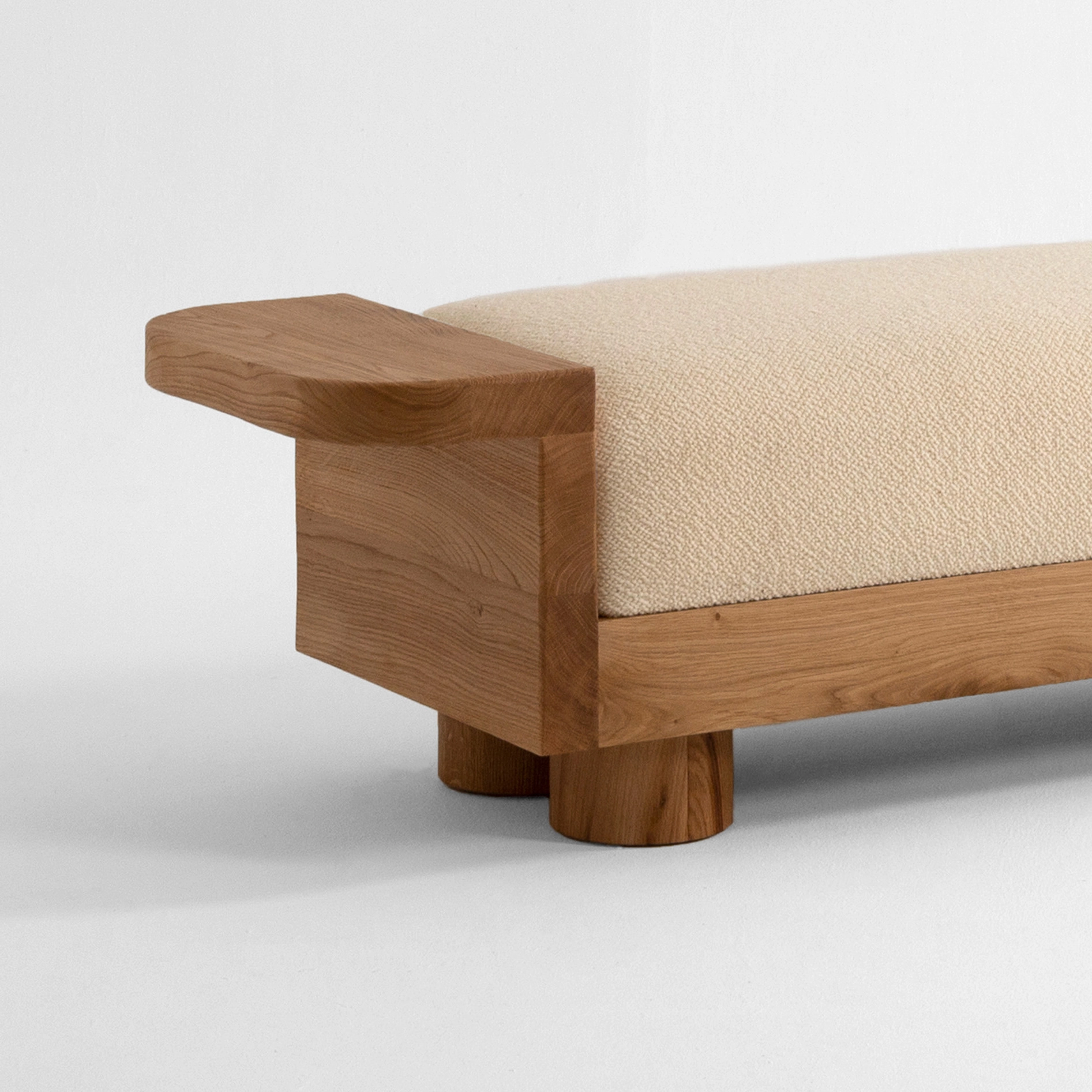 A la fois architecturale et minimale, la collection Nativ offre des assises élégantes avec une double fonctionnalité. Entouré (ou bordé) d’une structure en bois massif, le canapé invite à s’installer confortablement et à se prélasser tout en investissant la tablette ; on peut y poser à sa guise des accessoires du quotidien et s’approprier ainsi le meuble. Le bois façonné à la main met en évidence le travail et le geste de l’artisan.