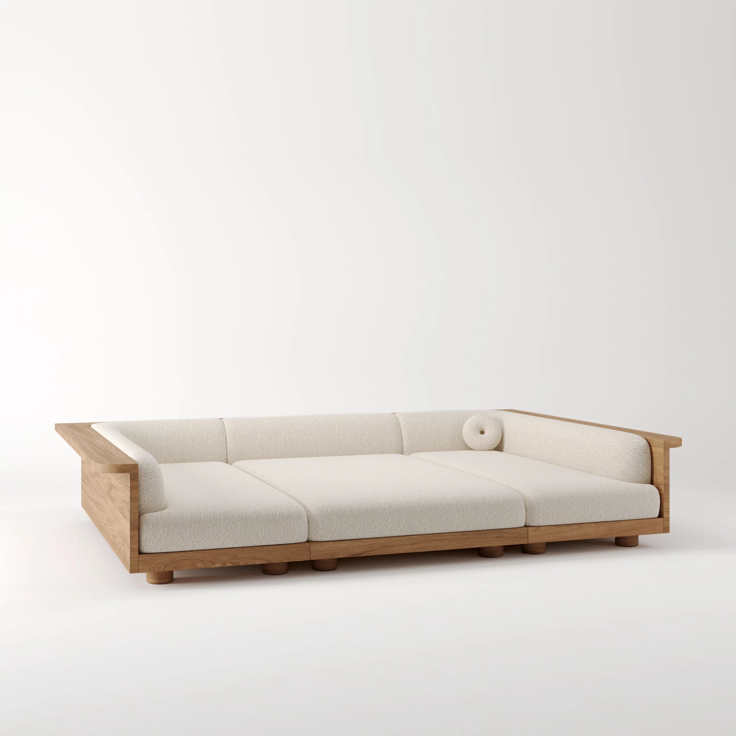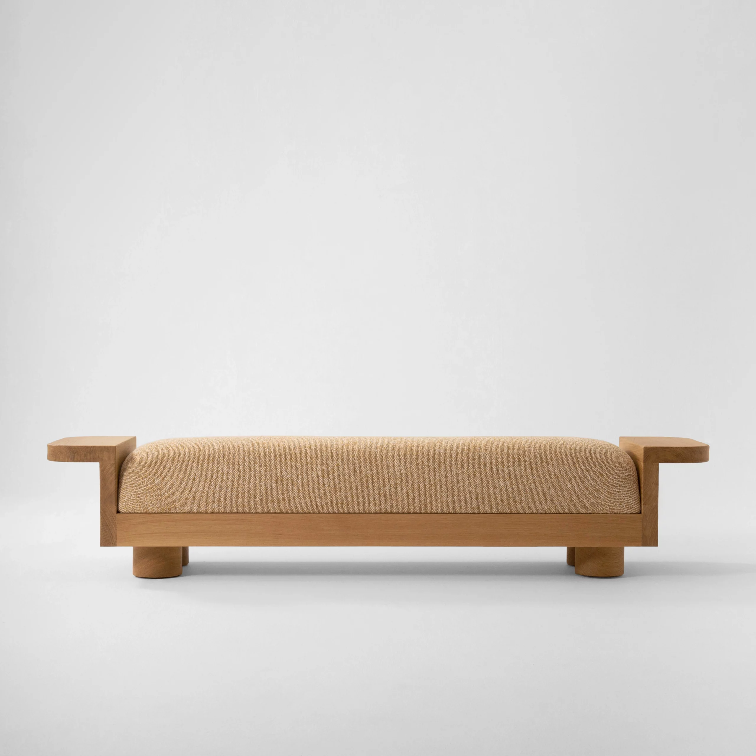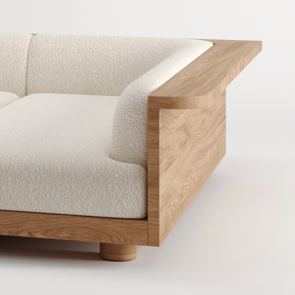 A la fois architecturale et minimale, la collection Nativ offre des assises élégantes avec une double fonctionnalité. Entouré (ou bordé) d’une structure en bois massif, le canapé invite à s’installer confortablement et à se prélasser tout en investissant la tablette ; on peut y poser à sa guise des accessoires du quotidien et s’approprier ainsi le meuble. Le bois façonné à la main met en évidence le travail et le geste de l’artisan.
