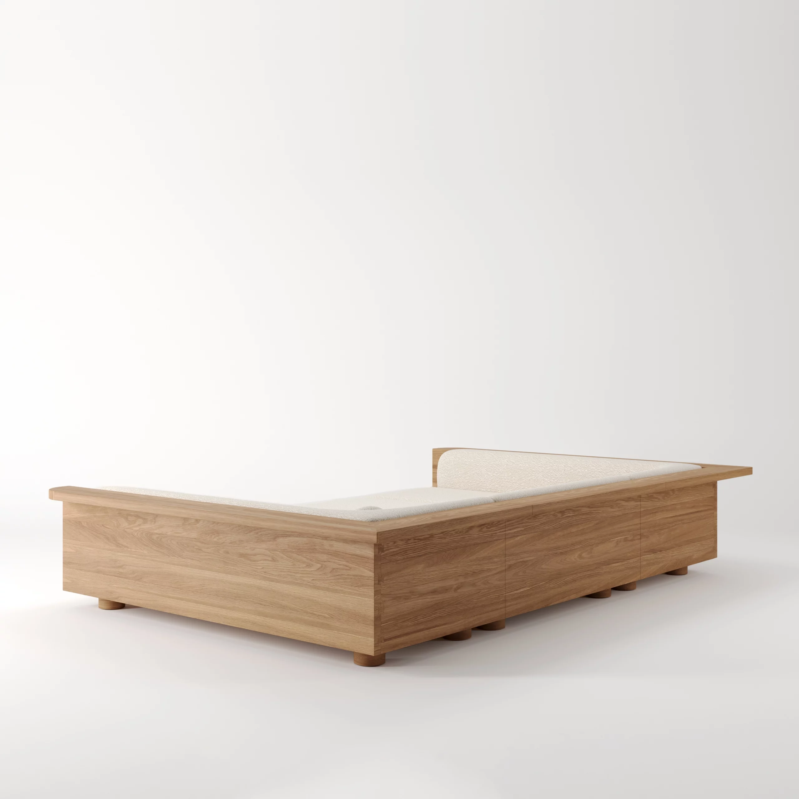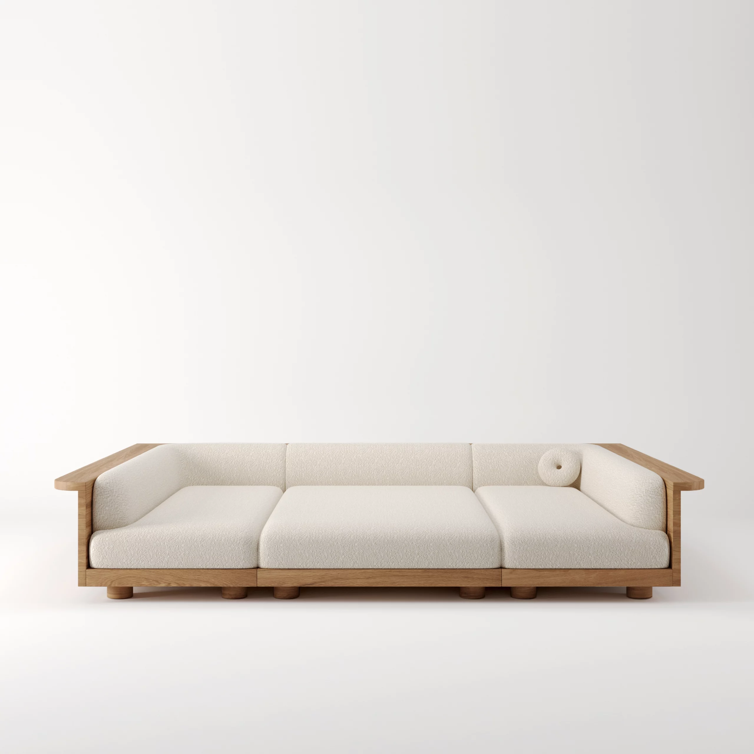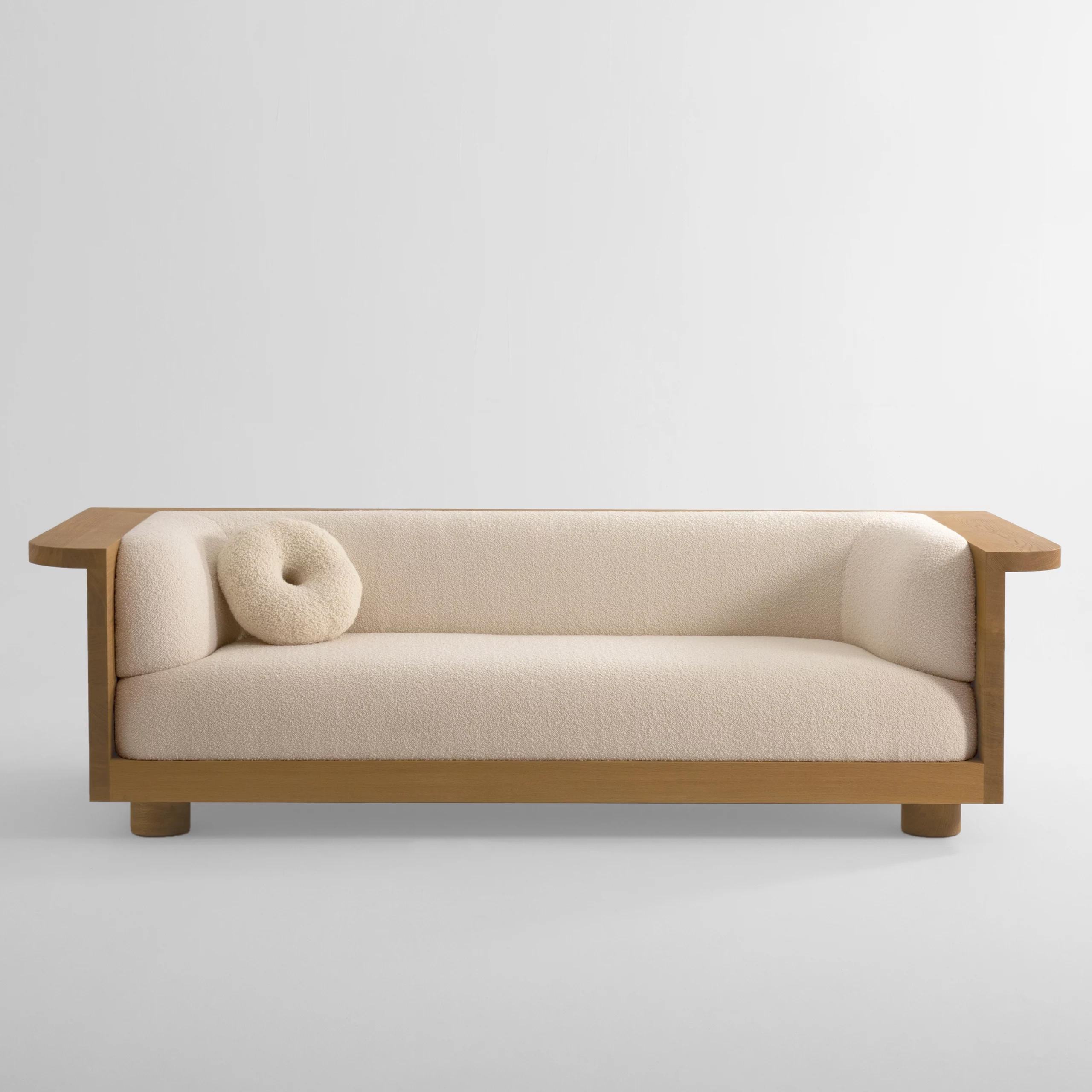 A la fois architecturale et minimale, la collection Nativ offre des assises élégantes avec une double fonctionnalité. Entouré (ou bordé) d’une structure en bois massif, le canapé invite à s’installer confortablement et à se prélasser tout en investissant la tablette ; on peut y poser à sa guise des accessoires du quotidien et s’approprier ainsi le meuble. Le bois façonné à la main met en évidence le travail et le geste de l’artisan.