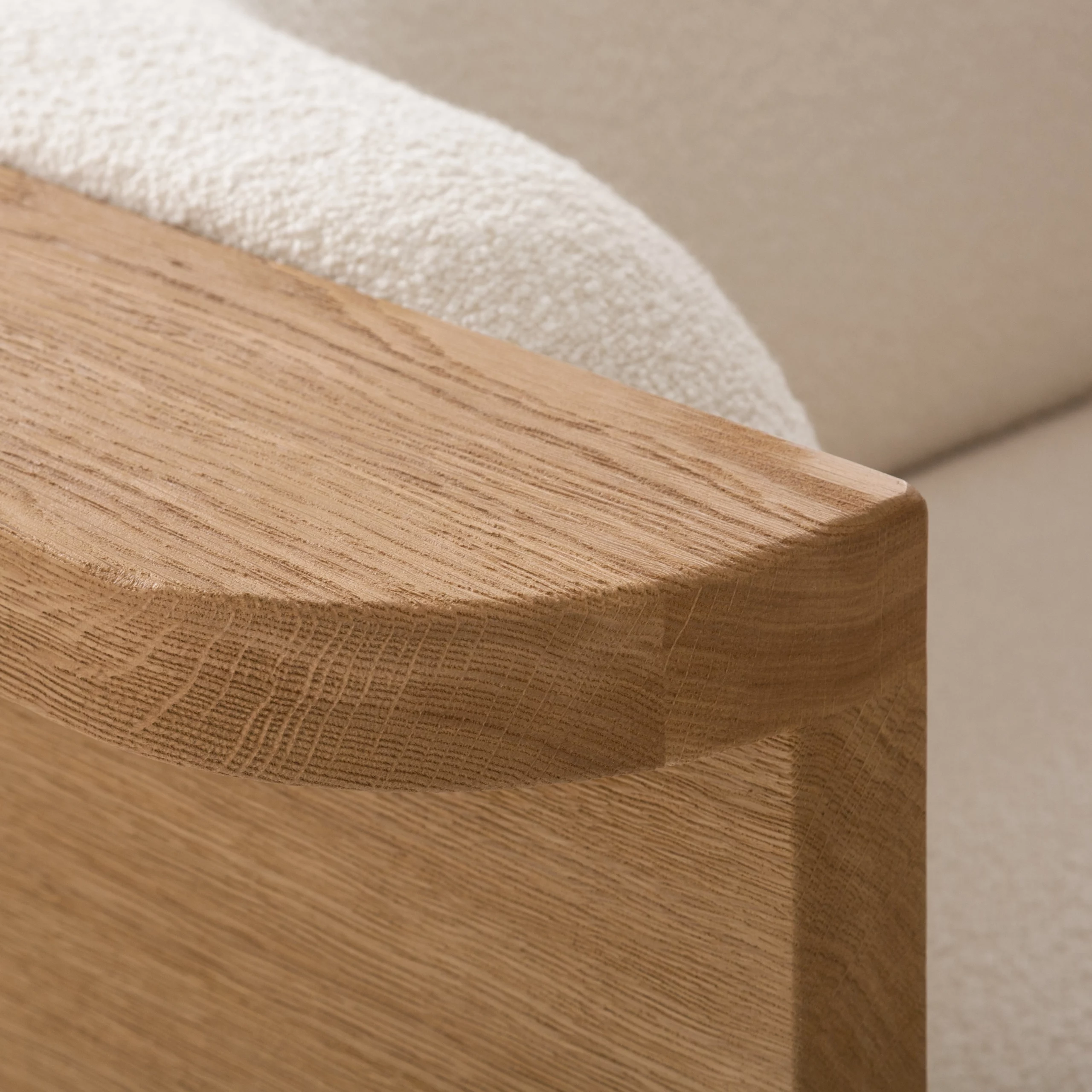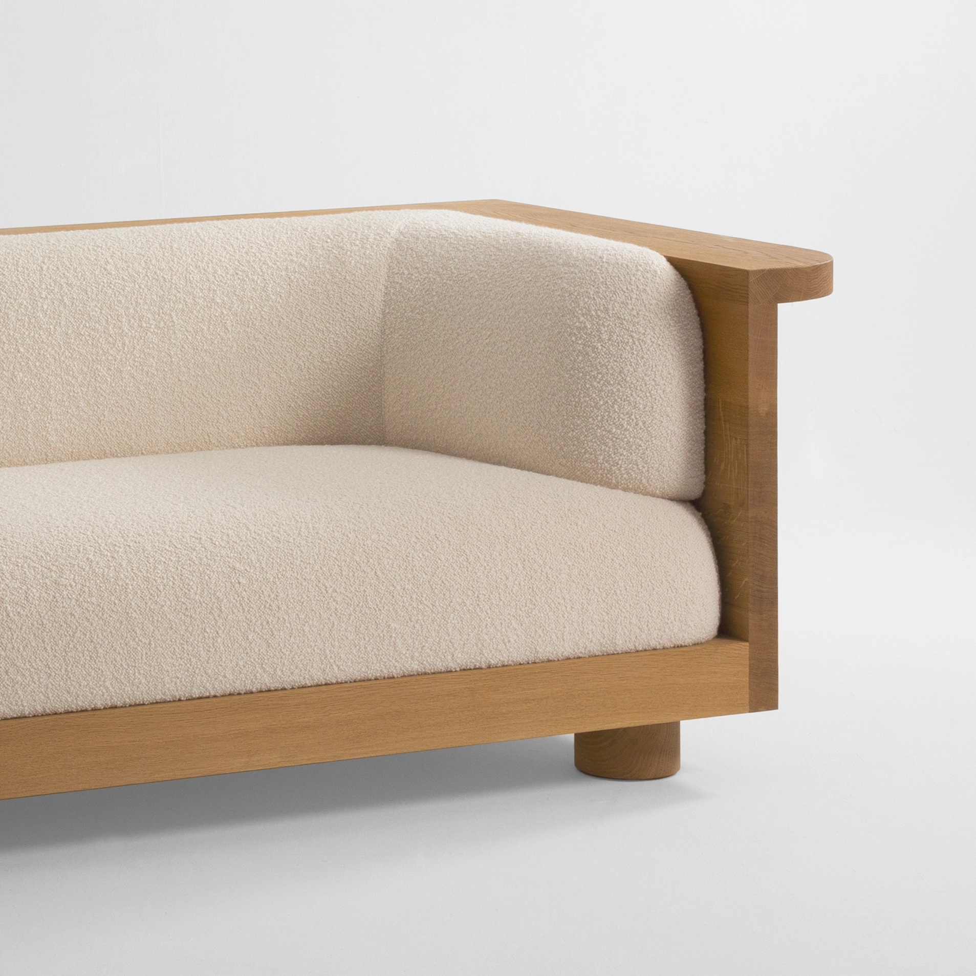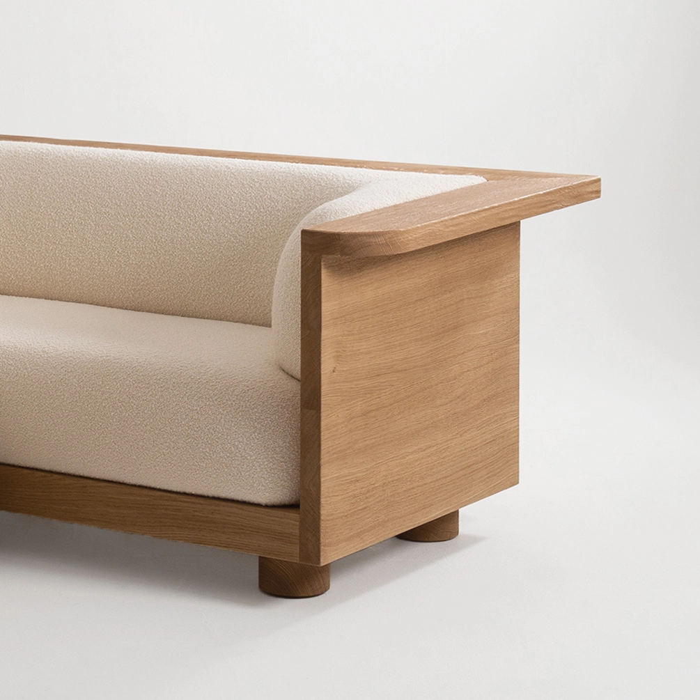A la fois architecturale et minimale, la collection Nativ offre des assises élégantes avec une double fonctionnalité. Entouré (ou bordé) d’une structure en bois massif, le canapé invite à s’installer confortablement et à se prélasser tout en investissant la tablette ; on peut y poser à sa guise des accessoires du quotidien et s’approprier ainsi le meuble. Le bois façonné à la main met en évidence le travail et le geste de l’artisan.