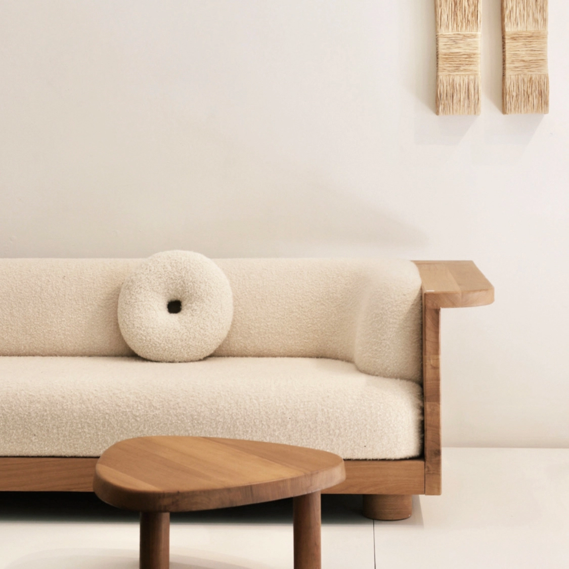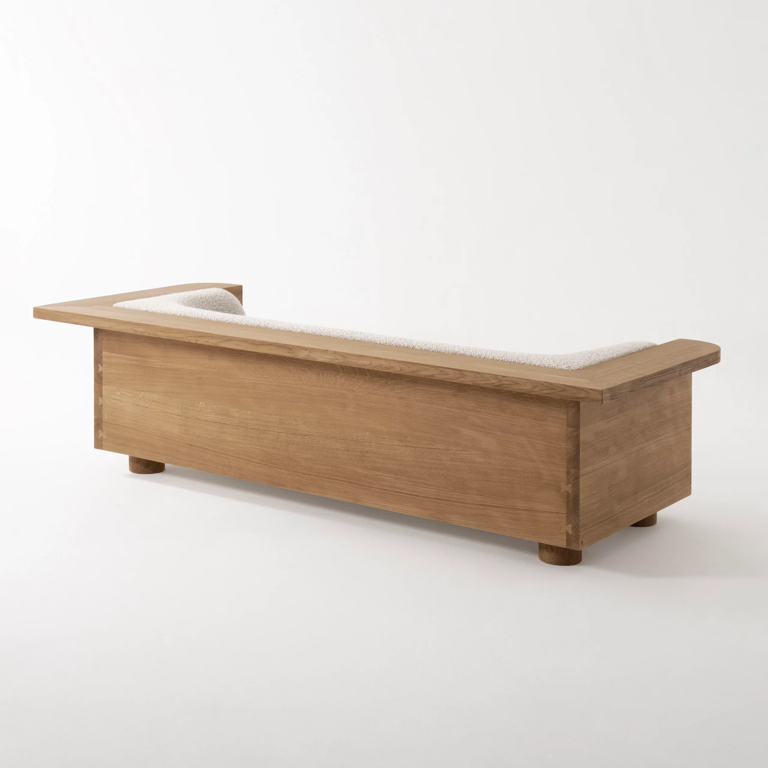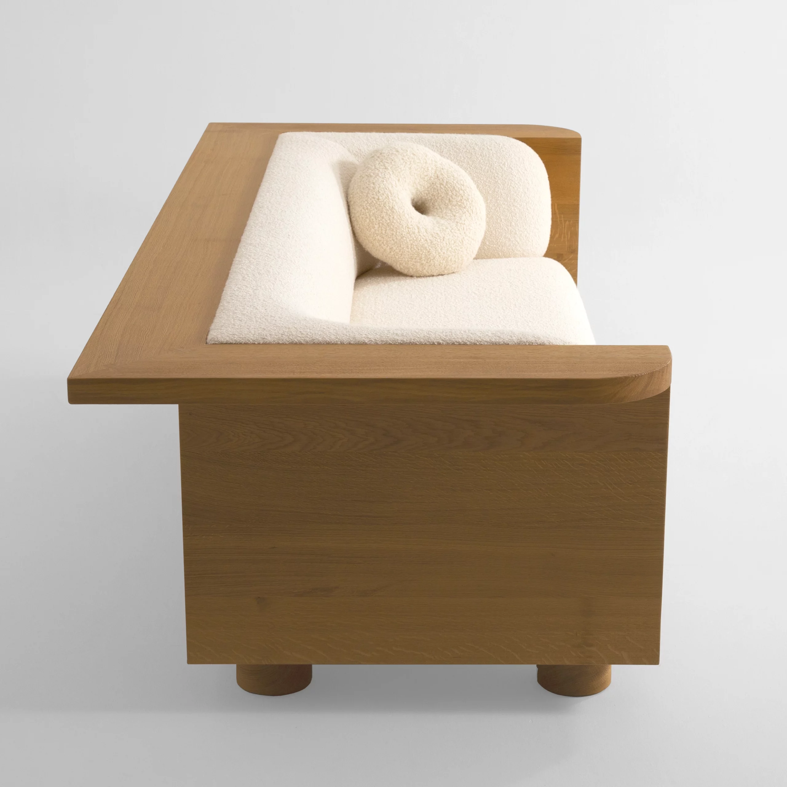 A la fois architecturale et minimale, la collection Nativ offre des assises élégantes avec une double fonctionnalité. Entouré (ou bordé) d’une structure en bois massif, le canapé invite à s’installer confortablement et à se prélasser tout en investissant la tablette ; on peut y poser à sa guise des accessoires du quotidien et s’approprier ainsi le meuble. Le bois façonné à la main met en évidence le travail et le geste de l’artisan.