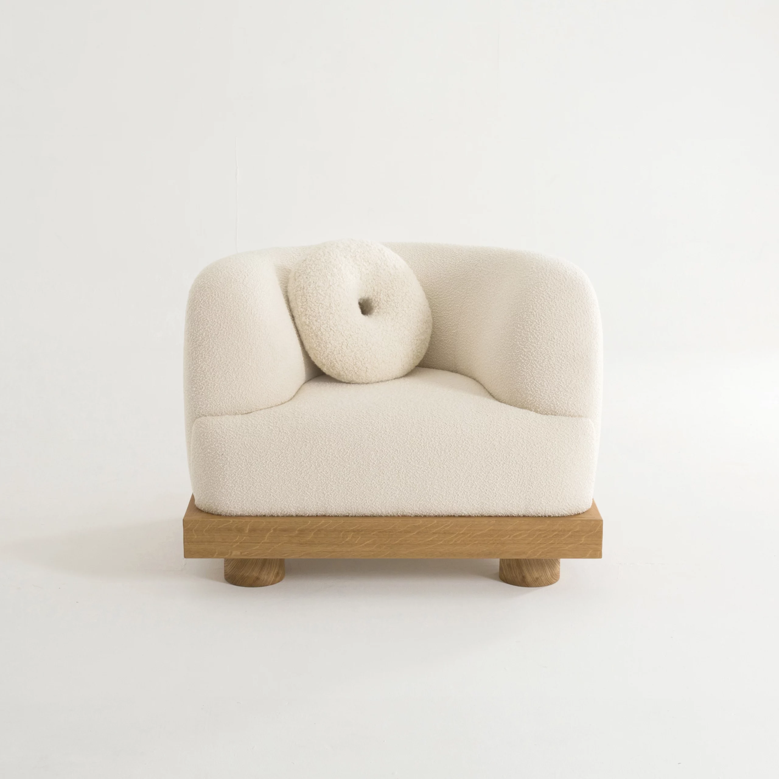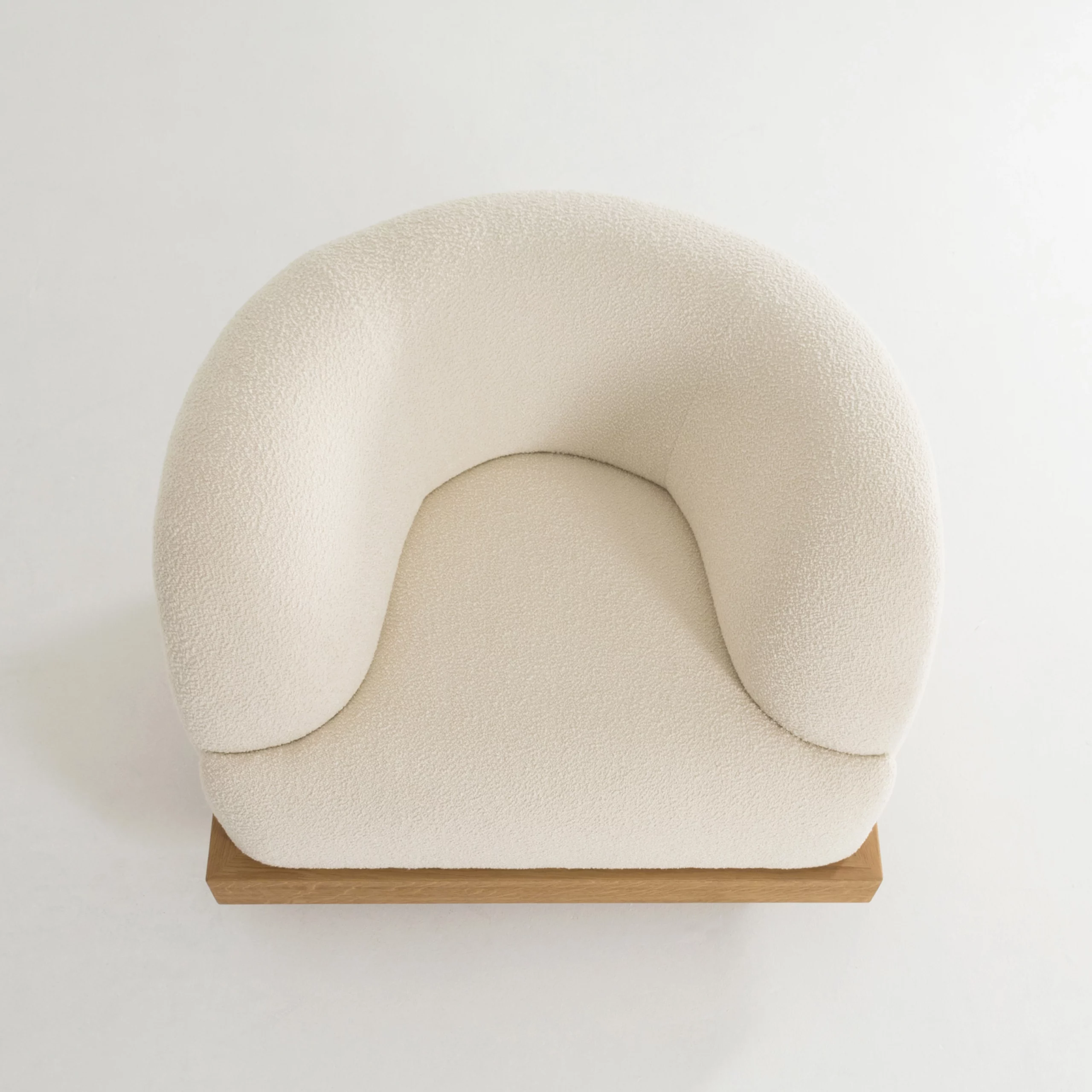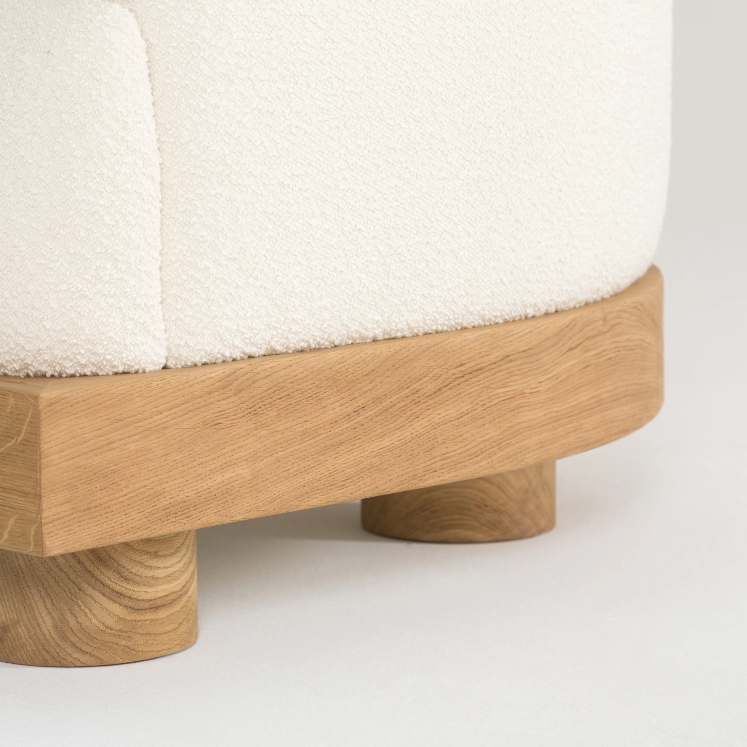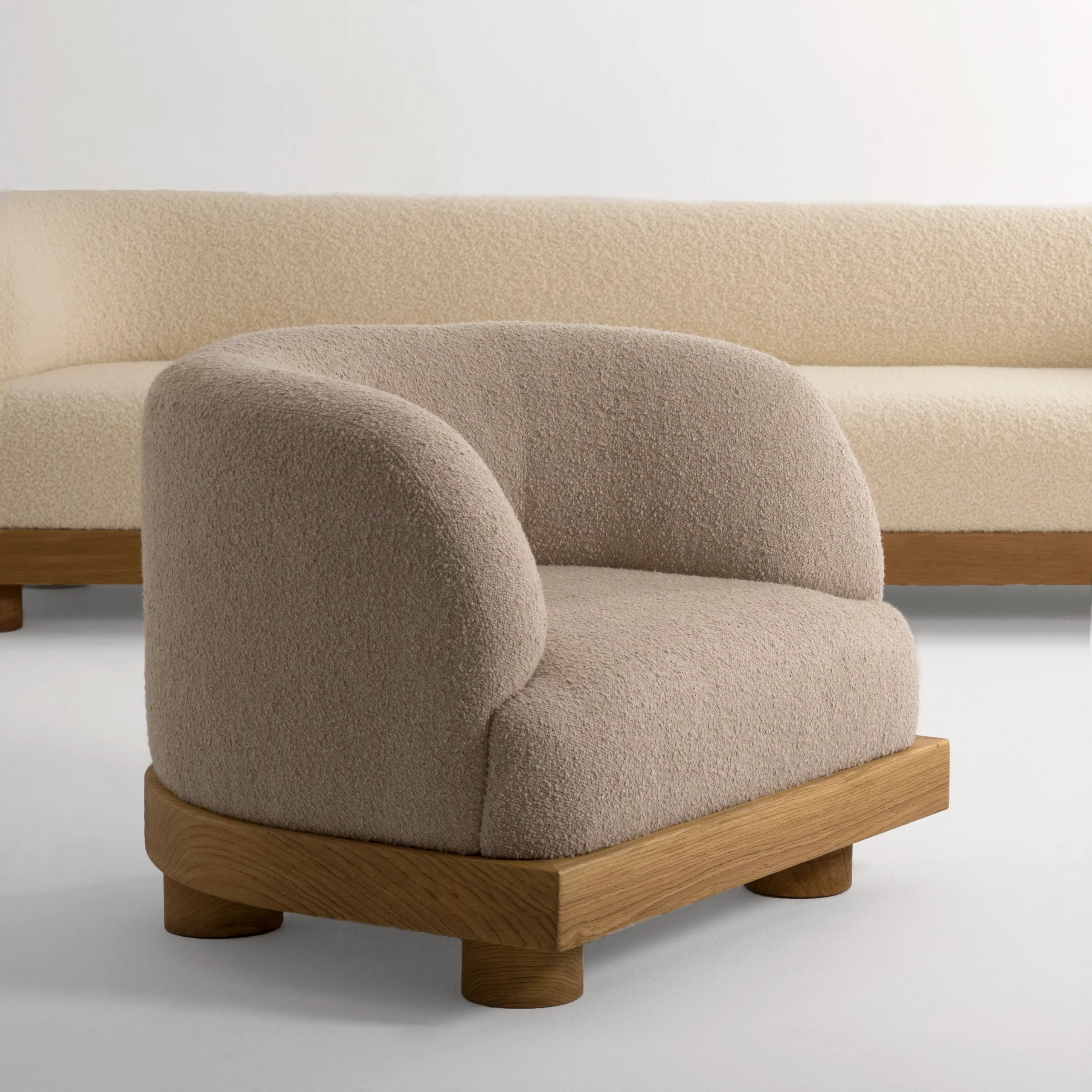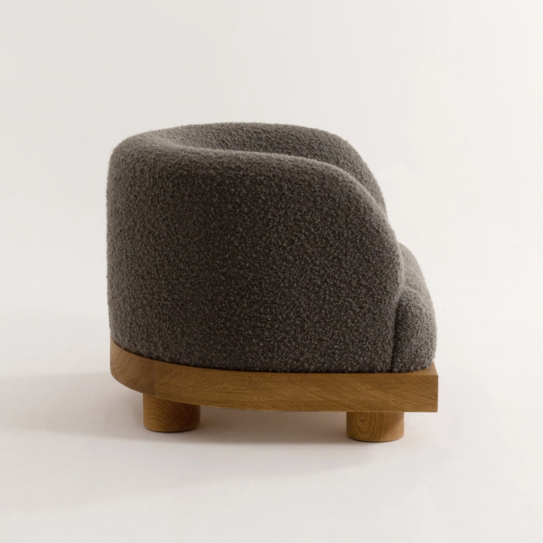 La collection NOMAD fait dialoguer inspiration wabi-sabi et sophistication française. L’aspect brut du bois brossé contraste avec les courbes tapissées des assises, la ligne minimale s’associe à l’arrondi tout en équilibre et en finesse.