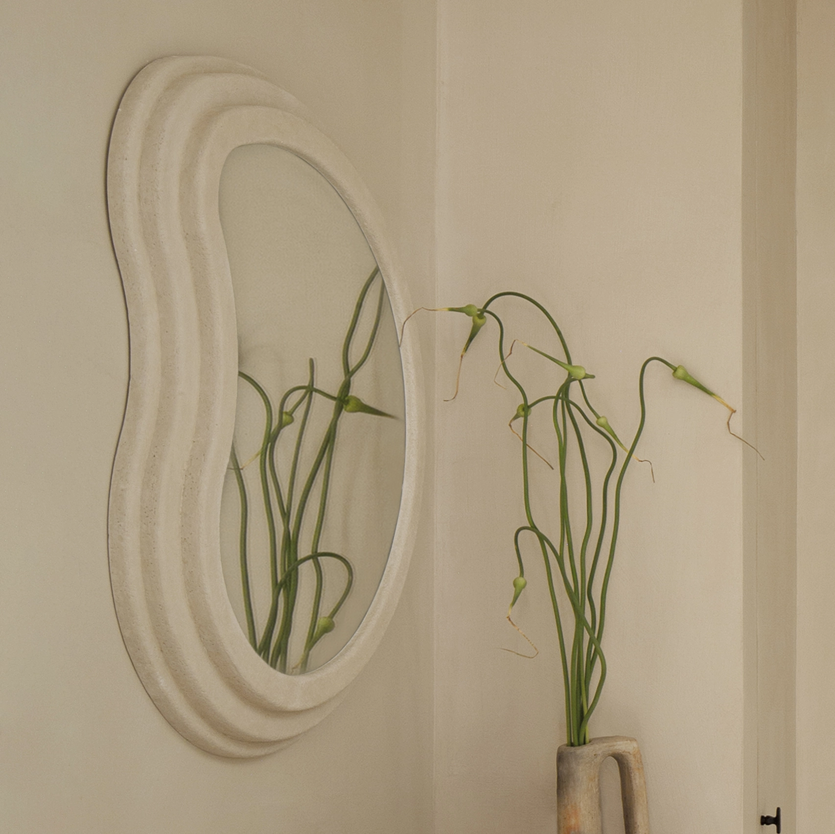 Plâtre chamotté et miroir