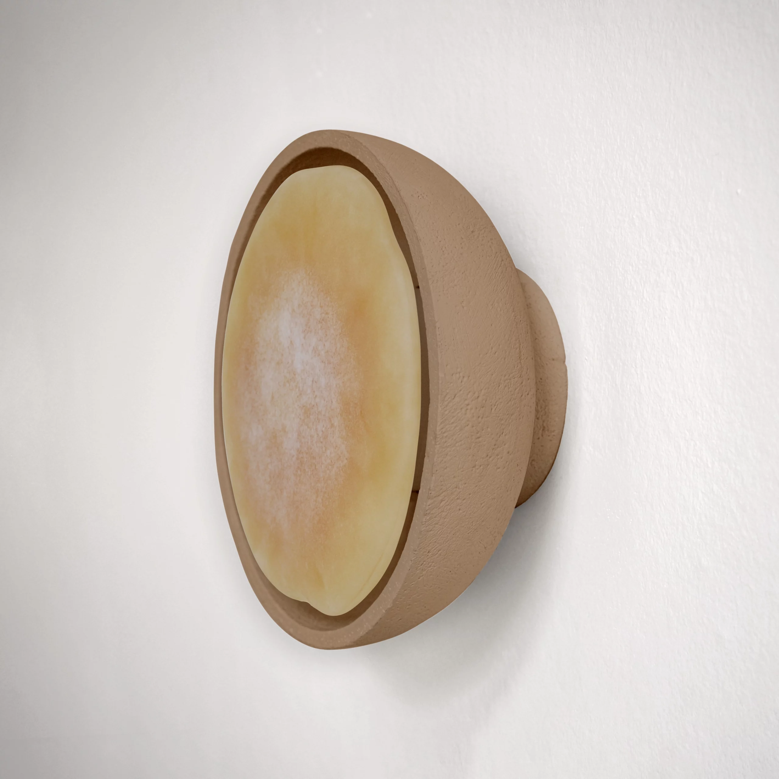 Les appliques OYO célèbrent le duo de matières et la main de l’artisan. En plâtre chamotté, elles accueillent tel un écrin une capsule en verre givré alliant justesse et harmonie.